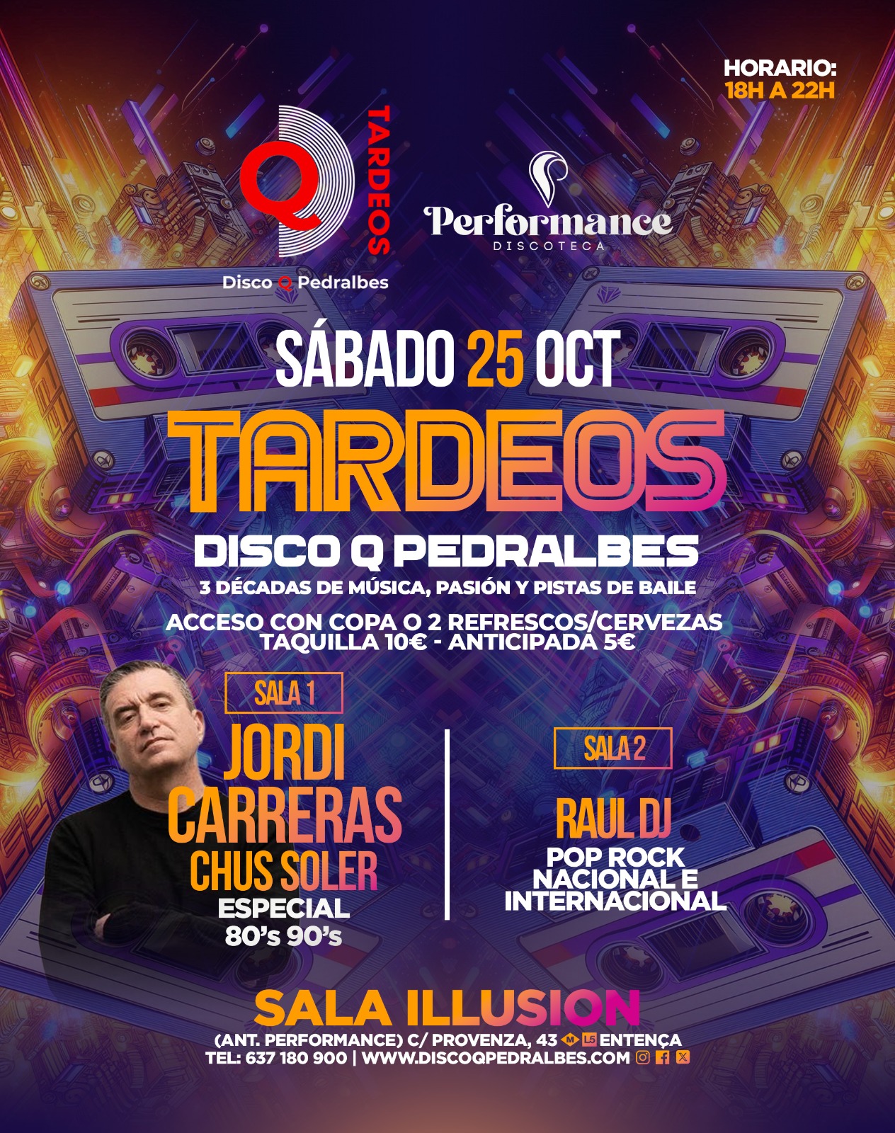 De 18 a 22 h tardeos en SALA ILLUSION. De 23:30 a 6 h en Q PEDRALBES