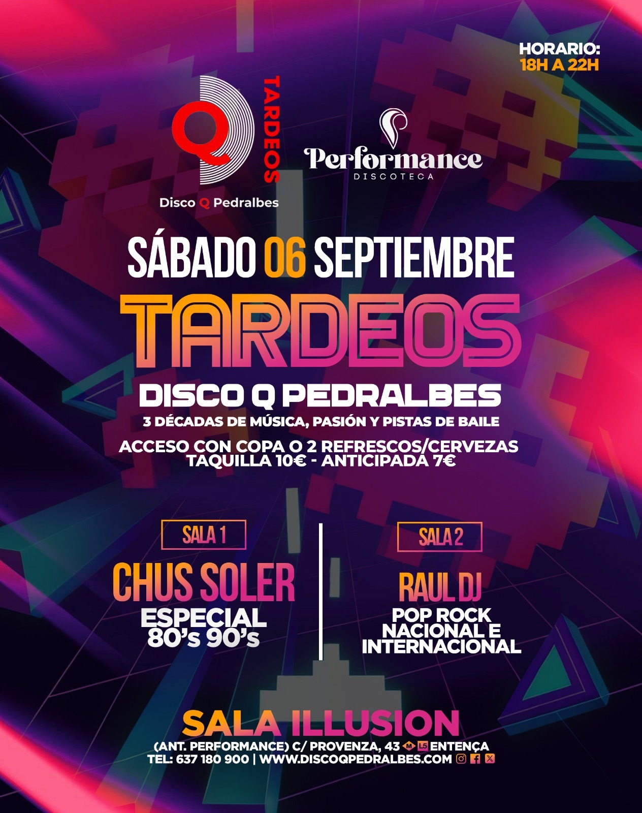 De 18 a 22 h tardeos en SALA ILLUSION. De 23:30 a 6 h en Q PEDRALBES