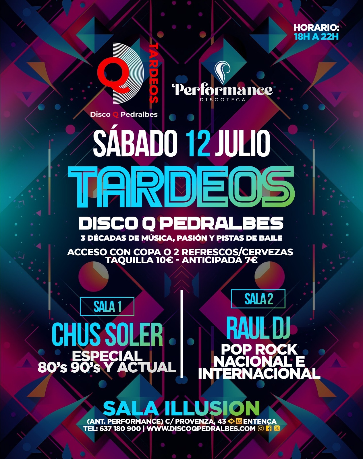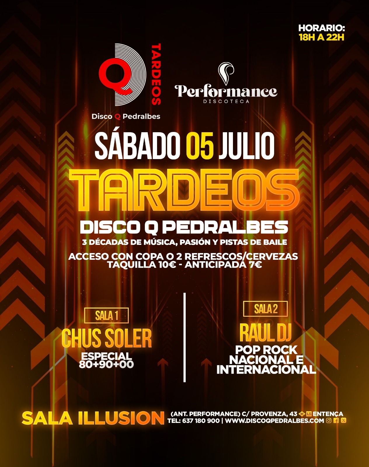 De 18 a 22 h tardeos en SALA ILLUSION. De 23:30 a 6 h en Q PEDRALBES