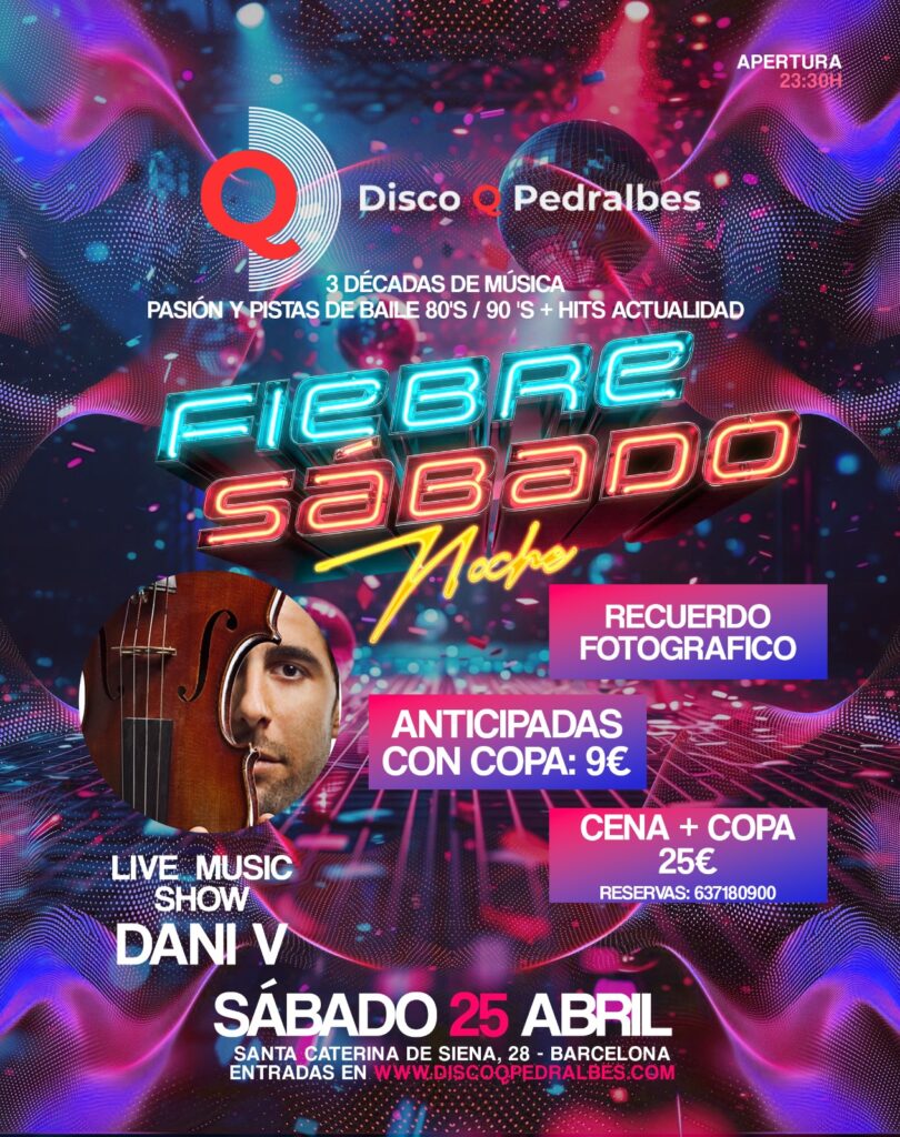 ✨ Este sábado 25 Abril , la noche se enciende en Q Pedralbes ✨ 🎶 Live show con Dani V 🔥 Animación especial 📸 Recuerdo fotográfico de la noche 🕚 […]
