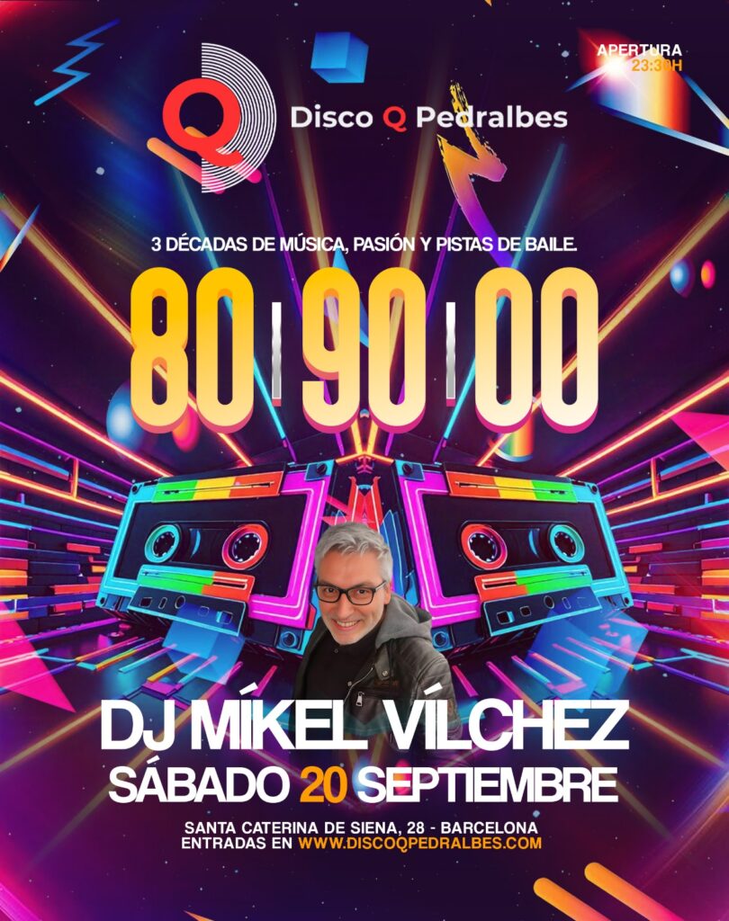 ✨ Disco Q Pedralbes presenta ✨🎶 Sesión Especial 80’s • 90’s • 00’s con MÍKEL VÍLCHEZ🔥 Tres décadas de música, pasión y pistas de baile 🔥 📅 Sábado 20 de […]