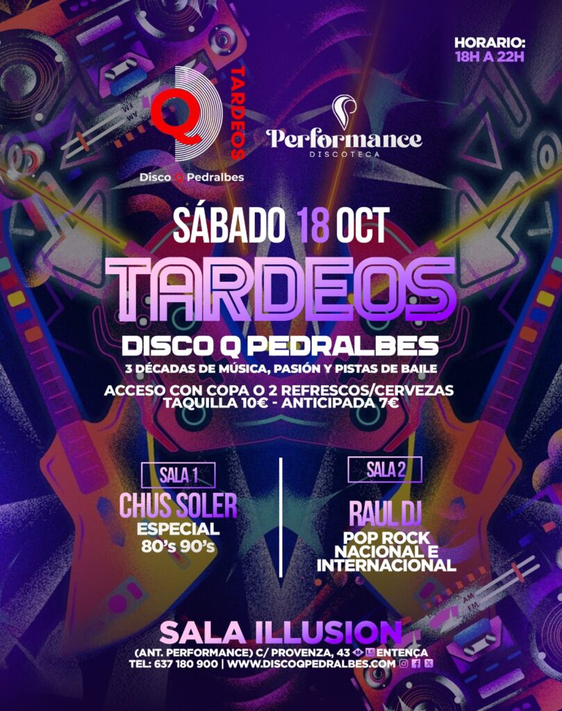 ¡Regresa el pasado! TARDEO Sábado 20 Septiembre, Sala Illusion (antes Performance) 18:00 a 22:00 h2 ambientes musicales para no parar de bailarHits de los 80s, 90s y actualidad en una […]